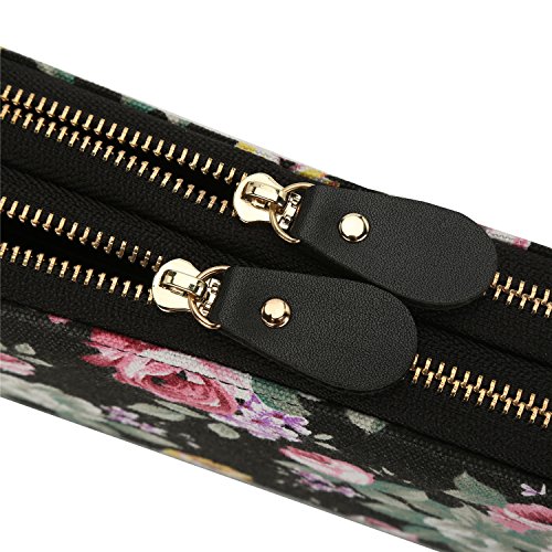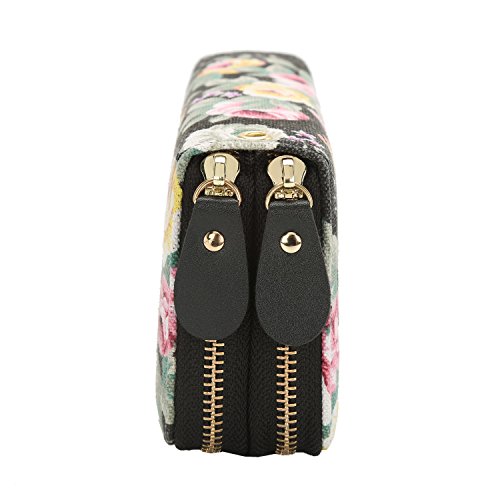 -. Feature : 2 compartment: one has 8 card slots and a zipper pocket inside for credit cards, ID cards passport and checkbook. Another separated zipper pocket for cell phone, cash and other things. / Floral pattern P.R.Inted, elegant, stylish, pretty and fashion. It's attractive to hold such a wallet when you go to party, shopping and travel. / Roomy, large capacity, enough for 5.5 inches cellphones and other daily necessity. One wallet can hold all daily demand that it is convenient for everyday use. / Material: Canvas made. Durable, sturdy, cute and lovely. / Measure: 7.8*3.9*1.7 inches, weight is 0.41 lbs
