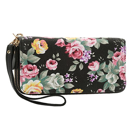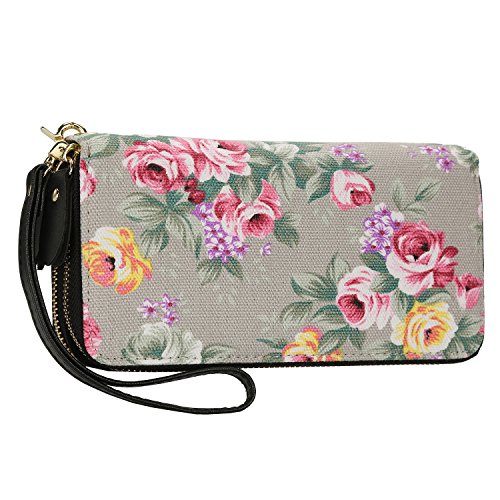 -. Title : Zipper Wallet Women Large Floral Clutch Wallet Canvas Card Holder Purse