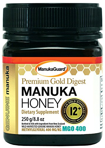 -. Binding : Health and Beauty -. Brand : ManukaGuard -. EAN : 0858631002173 -. Feature : Premium Gold / 100% Pure Manuka / Product of New Zealand / Certified 12+ Manuka / Gastrointestinal Support -. IsAdultProduct : 0 -. Label : Manukaguard -. LegalDisclaimer : Actual product packaging and materials may contain more and different information than what is shown on our website. We recommend that you do not rely solely on the information presented and that you always read labels, warnings, and directions before using or consuming a product. Please see our full disclaimer below. -. Manufacturer : Manukaguard -. Model : 0207 -. MPN : MKG1003 -. NumberOfItems : 1 -. PackageQuantity : 1 -. PartNumber : MKG1003 -. ProductGroup : Health and Beauty -. ProductTypeName : HEALTH_PERSONAL_CARE -. PublicationDate : 2014-12-22 -. Publisher : Manukaguard -. ReleaseDate : 2014-12-19 -. Size : 8.8 -. Studio : Manukaguard -. Title : Manukaguard Premium Gold Digest Manuka Honey 12+ MGO 400, 8.8 Ounce -. UPC : 772195626401