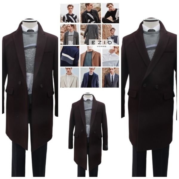 버건디(와인) 칼라감으로 고급스러움이 물씬 느껴지는 반더블 모직 코트.
