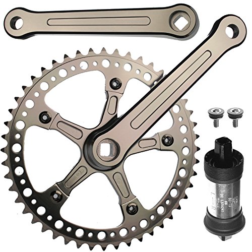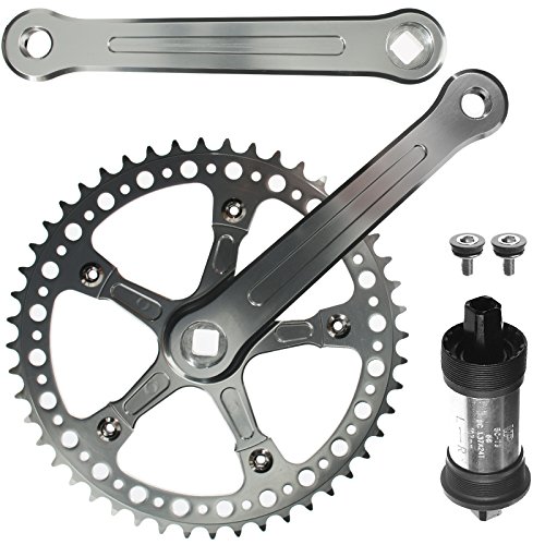 Studio : Cyclingdeal Publisher : Cyclingdeal Binding : Misc. Product Description Length: 165mm BCD: 130mm Chainring 48T Compatibility: 1/2"x1/8" Chain Chainline: 43.5mm (Chainline could be adjusted by moving the chainring inside the crankset arm) Crank finish: Forged Alloy 6061/T6 High Outer Chainring: Stamped Alloy Crank Weight: 722g (1.59 lb) BB: VP-BC73 , Square Included, VP Sealed 68mm x 107mm, Sealed Bearing BB Weight 280g (9.87 oz) Package including: Chainring: 48T and two crank arms. BB is? included. ? 0