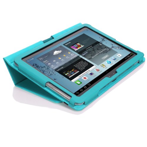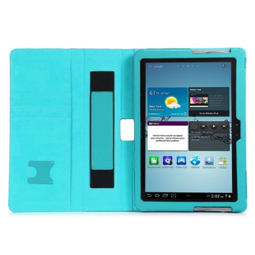 MoKo Slim Cover Case For Samsung Galaxy Tab 2 10.1 inch tablet, Light BLUE (with Flip Stand, Elastic Hand Strap, Stylus Loop, and MicroSD Slot)