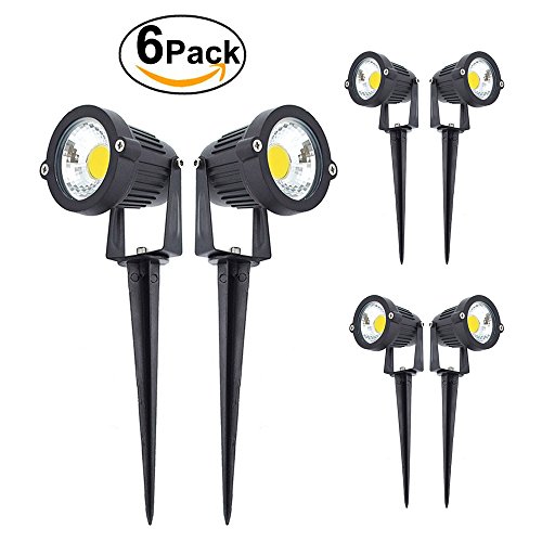 Sunriver 6W LED Landscape Lights 12V 24V Outdoor Spotlight Waterproof Path Light Low Voltage Lamp with Spike Stand for Garden, Yard, Pathways, Lawn, Driveway Decorative Lighting (6 Pack, Warm White)
