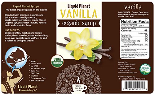 Organic Vanilla Syrup, Vanilla Coffee Syrup, 750 ML with Syrup Pump from Liquid Planet
