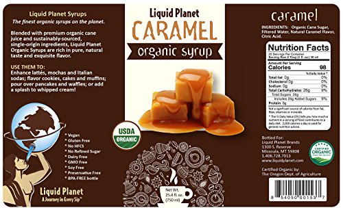 Organic Caramel Syrup, Caramel Coffee Syrup, 750 ML with Syrup Pump from Liquid Planet
