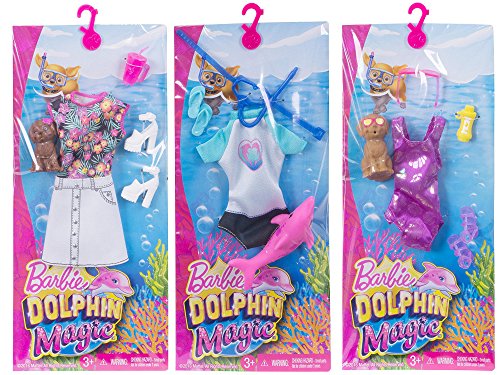 -. Feature : Bring Barbie doll's newest adventure to life with fashion packs that really make waves! / Each captures a different moment from the story with iconic pieces and an animal friend (doll sold separately) / The tropical essentials include a shell-print bathing suit, sandals, sunglasses, sunblock and a puppy / The set includes a related fashion, a pair of shoes, a themed piece and an animal friend / Collect them all!