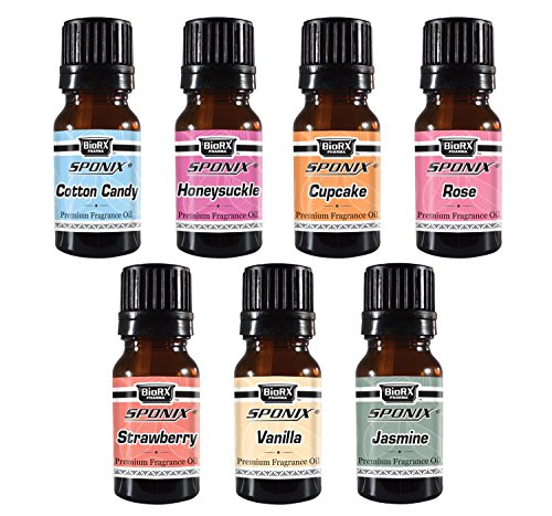 - SET. The set includes Cotton Candy, Frosted Cupcake, Strawberry, Vanilla, Rose, Honeysuckle and Jasmine fragrance oils in a 10 mL glass bottles with dropper.