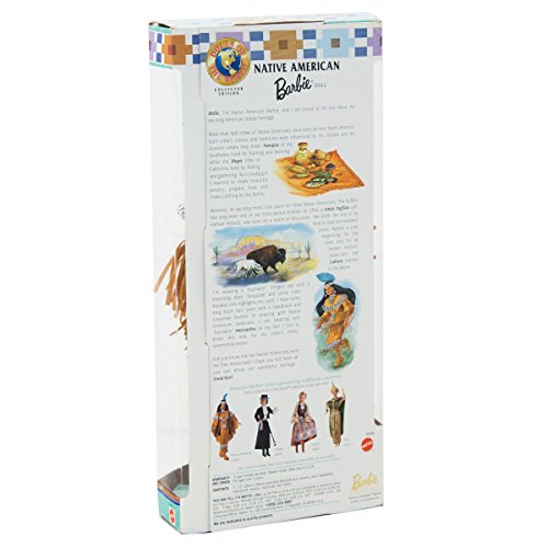 - Includes : Fourth Edition Native American Barbie Doll with Poncho, Skirt, Headband, Moccasins, Jewelry, Hairbrush and Doll Stand
