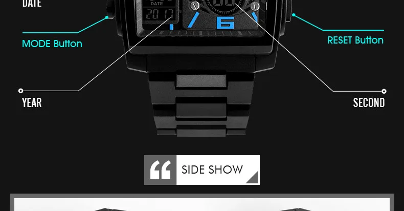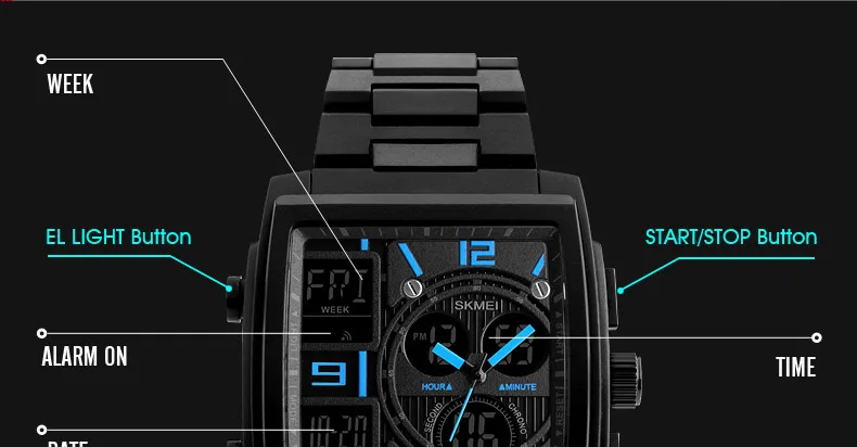 Feature:Complete Calendar,Week Display,Water Resistant,Back Light,Chronograph,Multiple Time Zone,Alarm