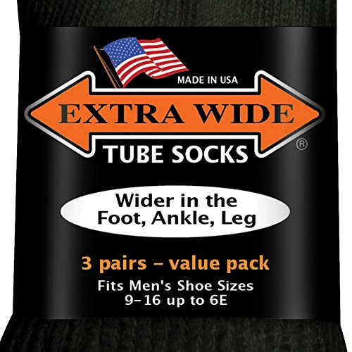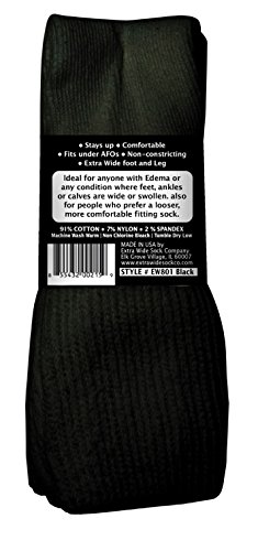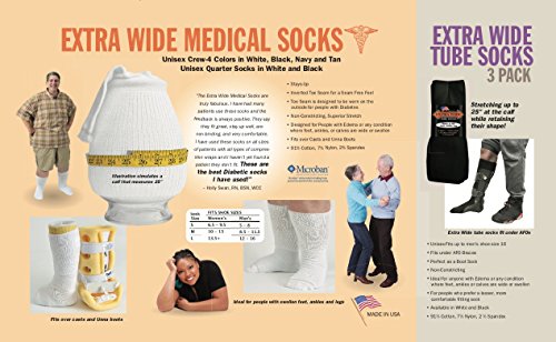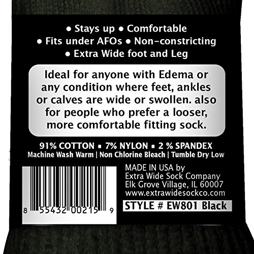 Studio : Extra Wide Sock Company Publisher : Extra Wide Sock Company Binding : Health and Beauty Product Description Our Extra Wide Tube Socks are designed to fit beautifully inside of your boots for both Men and Women. They're Durable, Non-Binding, and comfortable! Are you tired of squeezing into tight socks? Give these a try! Great for people with edema or any condition where feet, ankles, or calves are wide or swollen; or if you like a looser more comfortable fitting sock. These socks also work well under AFO Braces. Our Entire Line is Made in the USA!!! Machine wash warm, non-chlorine bleach, tumble dry low. 0