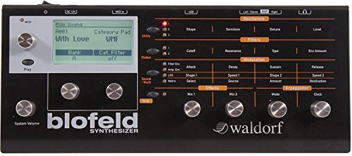 Studio : Waldorf Publisher : Waldorf Binding : Electronics Product Description The Waldorf Blofeld synthesizer module combines incredible-sounding analog-modeled circuitry with the power, convenience, and accessibility of modern digital features. The elegant chassis is uncluttered and simple to use, with solid aluminum control knobs and well-placed buttons for accessing parameters and functions in the Blofeld. The large, easy-to-read display lets you navigate through the Blofeld's 1,000-plus sounds and settings. In addition to its incredible tweakability, you get really simple USB connectivity for editing and management functions on the Blofeld. 0
