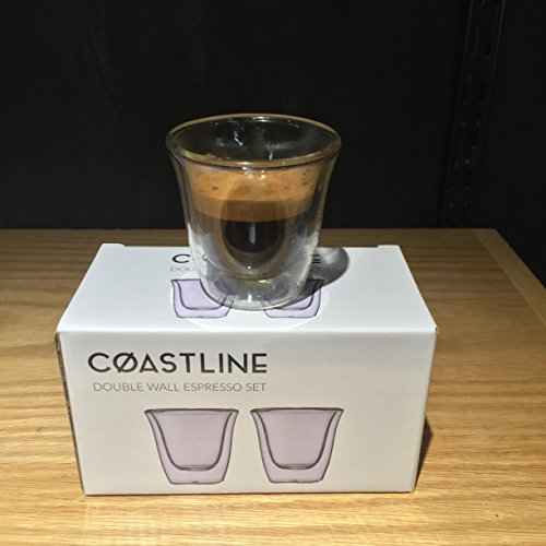-. Brand : CoastLine -. Color : Clear -. EAN : 0642872946859 -. Feature : DOUBLE WALL BOROSILICATE GLASS: (2.0 oz) is naturally BPA, toxin and lead free; borosilicate glass will not impact the flavors of the contents. / TEMPERATURE CONTROL: Keeps drinks hot or cold; double wall glass prevents heat or cold transfer and does not sweat when filled with cold beverages or desserts. / DOUBLES AS SHOT GLASS: Perfect size to use as a shot glass and for spirits served neat or with a cube of ice such as whiskey, bourbon or scotch. / DISHAWASHER SAFE: Your double wall espresso glasses will not become cloudy over time - even after 1,000 dishwasher cycles! / OPTICAL ILLUSION EFFECT: contents appear to be floating! A perfect gift for the person that entertains or enjoys unique glassware. -. Label : CoastLine -. Manufacturer : CoastLine -. Model : CLES -. PackageQuantity : 2 -. ProductGroup : Kitchen -. ProductTypeName : KITCHEN -. Publisher : CoastLine -. Studio : CoastLine -. Title : CoastLine Double Wall Glass Espresso & Shot Glass Set (Set of 2) | Espresso Shot Glasses Set - Espresso Glass 2 OZ Each | Borosilicate Glass | Dishwasher Safe | Lifetime Warranty - No Risk! -. UPC : 642872946859