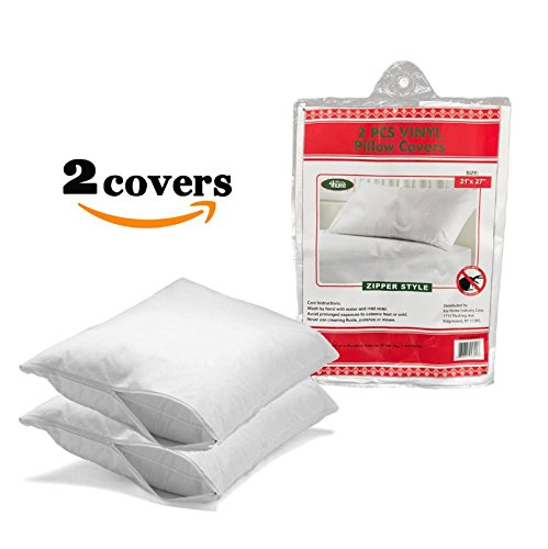 Zippered Pillow Waterproof Encasement Bed Bug Proof Pillow Cover Protects Against Dust Mite, Bacteria, Allergens - Vinyl Fabric Pillow Protector 2 Pack