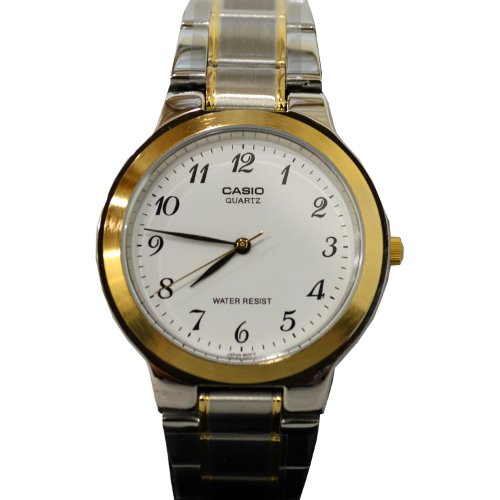 Brand, Seller, or Collection Name:Casio Model number:4971850442820 Part Number:19158 Item Shape:Round Dial window material type:Mineral Display Type:Analog Case material:Ion Plating Case diameter:33 millimeters Case Thickness:7.20 Band Material:Stainless steel Band width:20 millimeters Band Color:BiColor Dial color:White Calendar:No Special features:Water Resistant Item weight:3.52 Ounces Movement:Analog