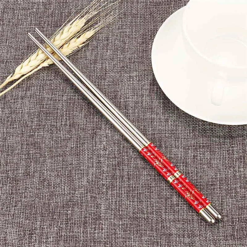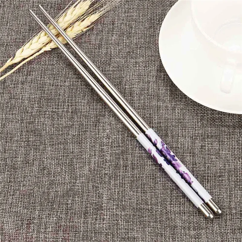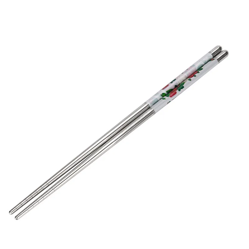 Model Number:8.9" Length White Vine Pattern Stainless Steel Chopsticks Pair New