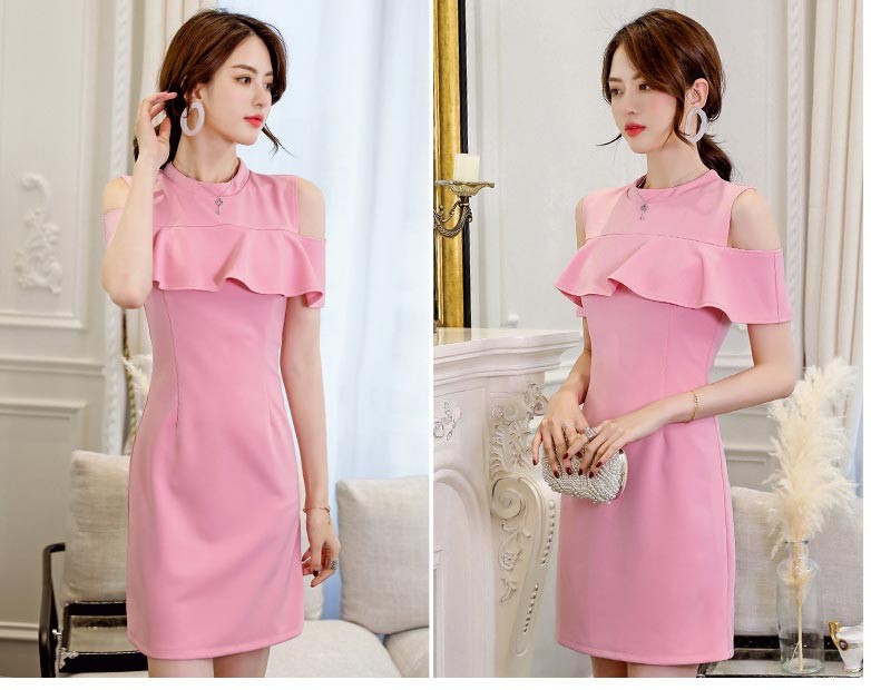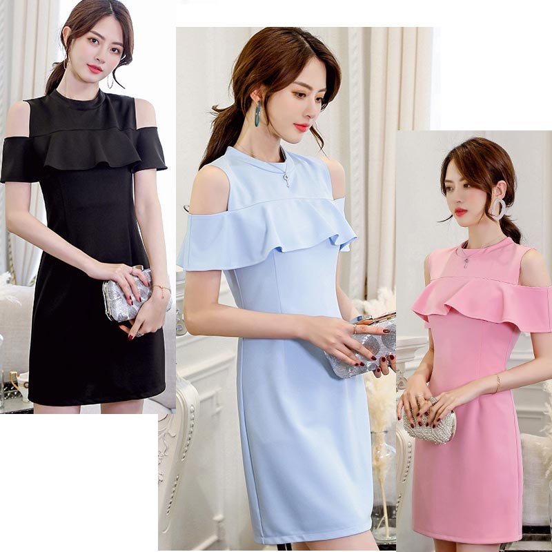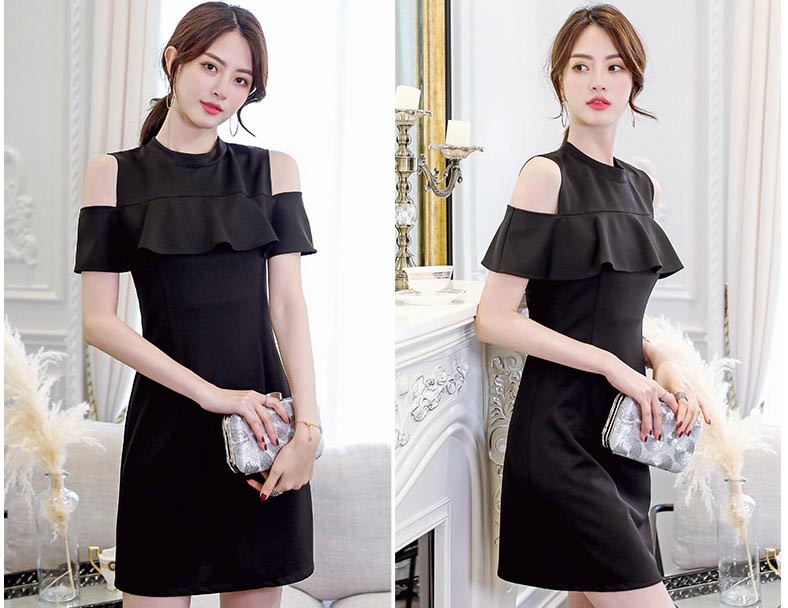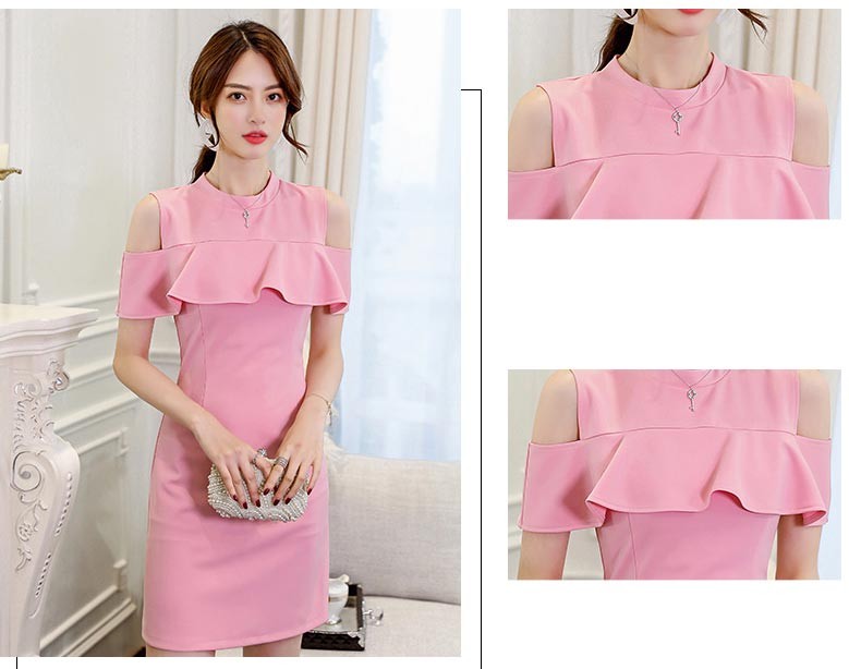 ラウンドネック・オープンショルダーデザインのエレガントなワンピース♪