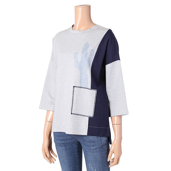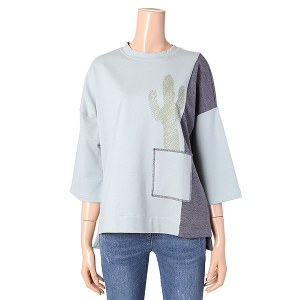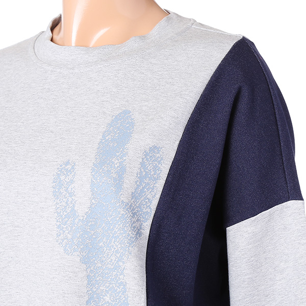 - 루즈핏 선인장 프린트 배색 티셔츠입니다.