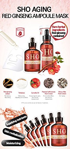 KORE BEAUTY USA Authentic Coreana Sho Red Ginseng for Skin Nourishment and Moisturizing, Face Mask, 6 Count