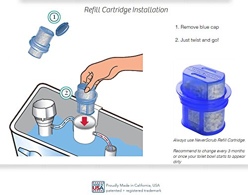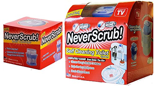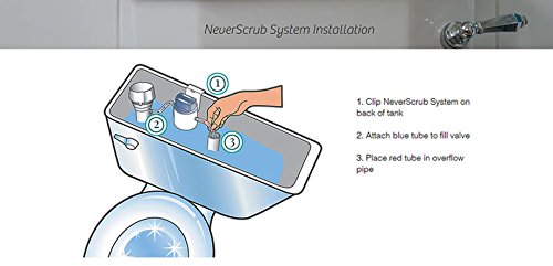 -. Feature : The Most Advanced, Automatic Toilet Bowl Cleaning System On The Market Today / NeverScrub!® Keeps your bowl clean with NO scrubbing-ever! ~ Destroys hard water stains, rust, calcium, lime, iron deposits and is mildew resistant! / Does not damage tank seals, flapper, fill valve or other tank parts / Safe to use on your septic system ~ Proudly made in USA / You Will Get 1 System And 1 Refill