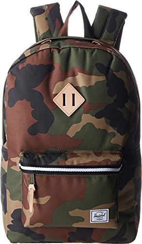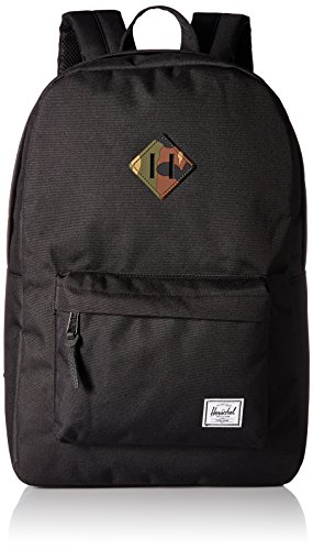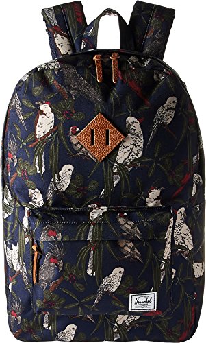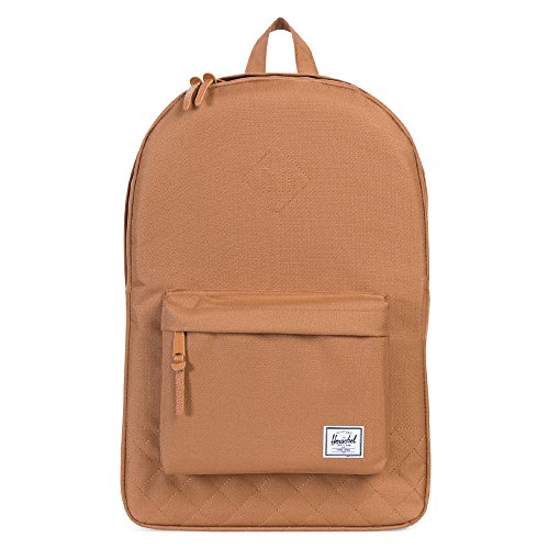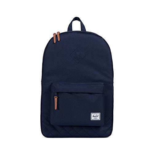 Limited lifetime warranty. Do you know your roots? The Heritage from Herschel Supply Co. certainly does. With a signature shape and feel, this sleek backpack will help define your style for years to come. Spacious main compartment can hold books, clothes, or other daily essentials. Interior sleeve pocket can hold up to a 15" laptop. Additional front compartment with a key clip. Internal media pocket for added storage options. Leather diamond detail accents the front of bag. Herschel Suppler Co. tag in bottom corner of bag. Eco-friendly reinforced bottom creates a sharp contrast. Padded and adjustable straps for a custom fit. Exterior: 100% polyester.Lining: 100% nylon. Imported. Measurements: Bottom Width: 12 1⁄2 in Middle Width: 12 in Top Width: 11 in Depth: 5 1⁄4 in Height: 18 1⁄2 in Strap Length: 34 in Strap Drop: 15 1⁄2 in Handle Length: 6 1⁄4 in Handle Drop: 2 1⁄2 in Weight: 1 lb 4 oz This product may have a manufacturer's warranty. Please visit the manufacturer's website or contact us at warranty@support.zappos.com for full manufacturer warranty details.Feature