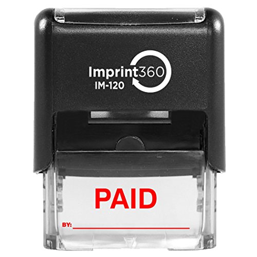 Imprint 360 AS-IMP1113R PAID Stamp with By: Line, Red Ink, Heavy Duty Commercial Self-Inking Rubber Stamp, 9/16" x 1-1/2" Impression Size
