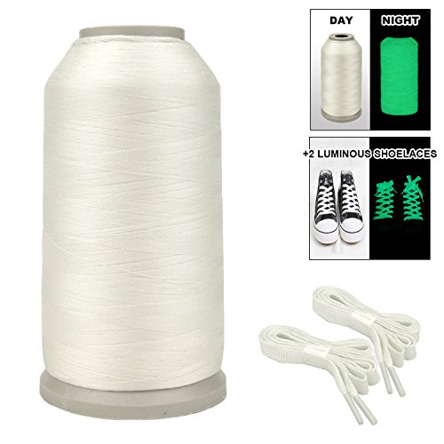 -. Feature : ◊Value Pack: Made of polyester, smooth, soft, non-toxic, strong and washable. Contains 3000 Yards of thread in optical white color, embroidery machine thread has excellent tensile strength which brings down chances of any breaking or fraying, fewer thread breaks allow you to complete your projects more efficiently. / ◊Fun And Special Sewing: It is a ideal for Halloween, birthday and various theme parties,and popular with joggers and trick-or-treaters. Package include a pair of luminous shoelaces and a machine embroidery thread, children will be delight as they see the thread glow in a darkened room. / ◊Extensive Application: The dark embroidery sewing thread can be used for baby clothes, bags, shoelaces, phone straps, friendship bracelets, knitted hat,cross-stitch, crochet, embroidery, hand knitting, sewing or etc. / ◊Glow In The Dark: Expose the embroidery thread in the sunlight for 20-30 minutes before use. It could shine brightly when in the all dark surrounding after absorbing enough sunshine. / ◊Luminous Shoelaces: The glow shoelaces are 100cm long, suitable for any kinds of shoes, including running shoes, boots, skates and so on. also a great creative festival gift for children or friends.