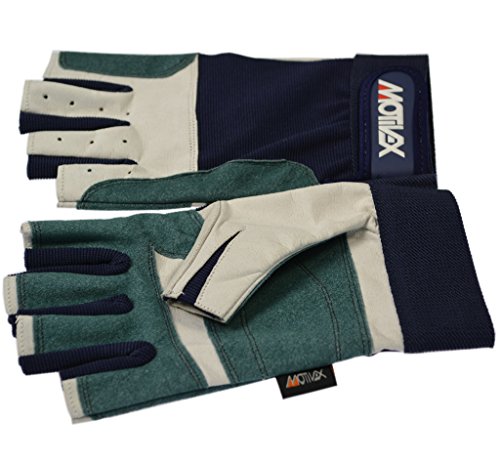-. Feature : Motivex Segelhandschuhe mit Elastanrücken für gute Anpassung an die Hand / Farbe: Rücken blau, hellgrau, Handfläche hellgrau, grünton / Sicher im Handgelenk durch breiten Klettverschluss / alle Finger geschnitten, Segelhandschuhe für den Wassersport und tägliche Arbeiten auf dem Boot