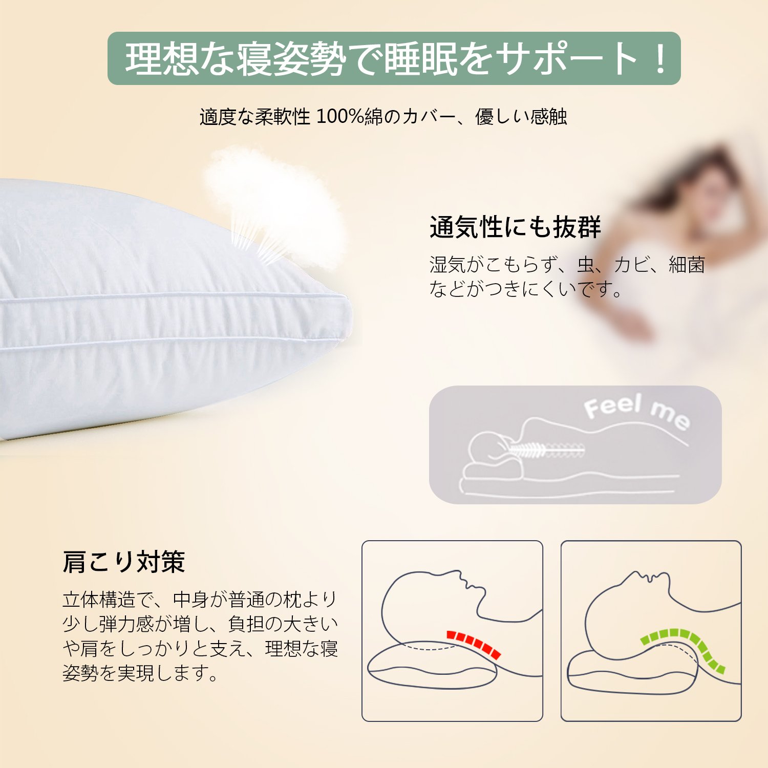 It has a three-dimensional structure that combines softness like feathers and high resilience, also has excellent resilience and elasticity, supports the neck and shoulders firmly, measures with stiff shoulders, makes a nice sleeping feeling, improves the quality of sleep
