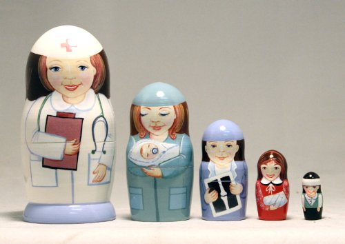 -. Title : Nurse 5-piece Russian Wood Nesting Doll