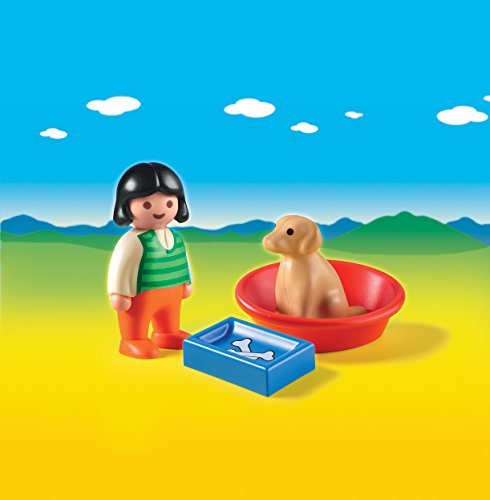 -. Feature : Teach an old dog a new trick with the Girl with Dog / With a bright and colorful design and large, rounded pieces, this PLAYMOBIL 1.2.3 set is ideal for toddlers / After a day of play, the dog can rest in the bed to re-energize for the next adventure / Set includes one figure, one dog, bed, and food bowl / Figures can bend, sit, stand and turn their heads