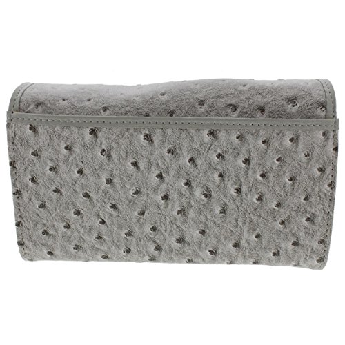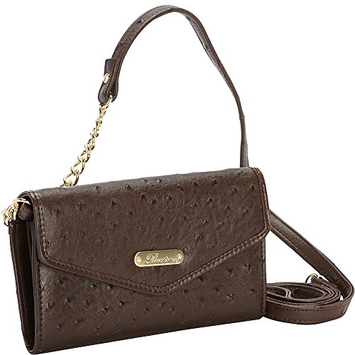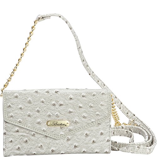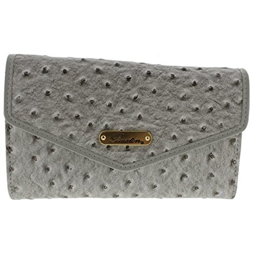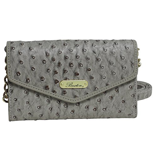 Studio : Buxton Publisher : Buxton Product Description Ostrich Embossed Man-Made Material with Goldtone Hardware Ostrich Brights Crossbody Wallet features an outside slip pocket, snap closure opens to 3 accordion pockets, 3 credit card slots, interior zipper compartment and "snap-off" crossbody strap. 0