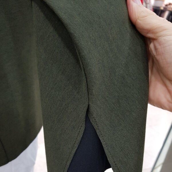 넥라인,소매밑단안쪽의 컬러배색이 포인트인 살짝여유있는 핏의 라운드티셔츠~~소매끝단을 살짝 접어 컬러를 포인트로 줄수있으며 와이드팬츠,스커트등으로 코디하시기를 추천합니다.컬러 블랙,카키,그레이사이즈 FREE폴리에스터75%,레이온20%
