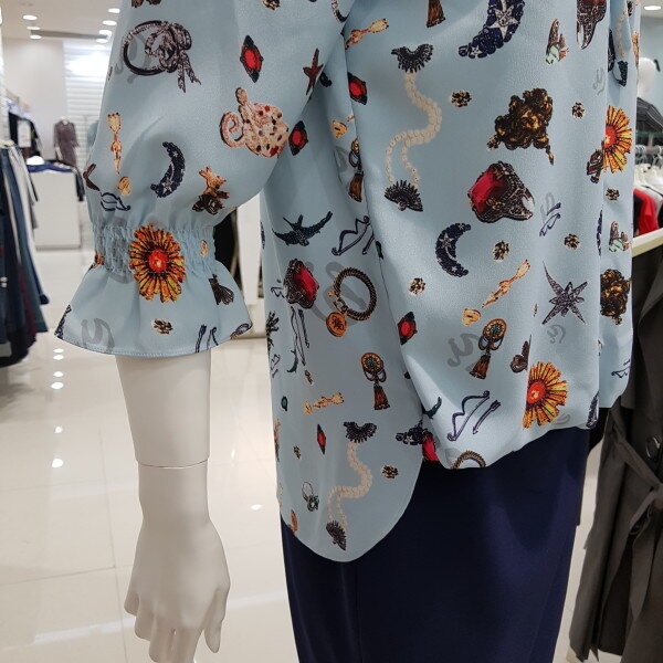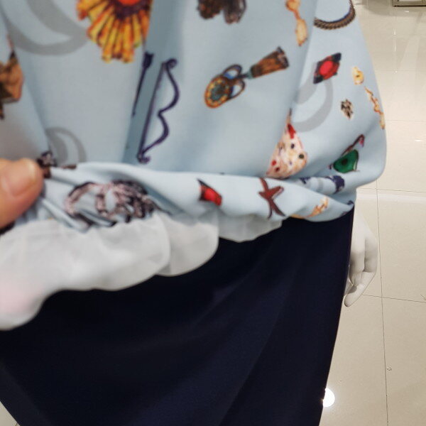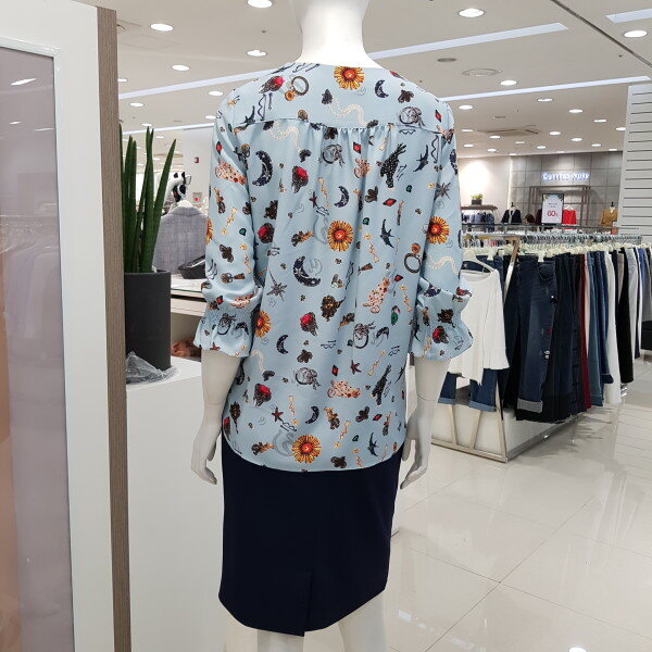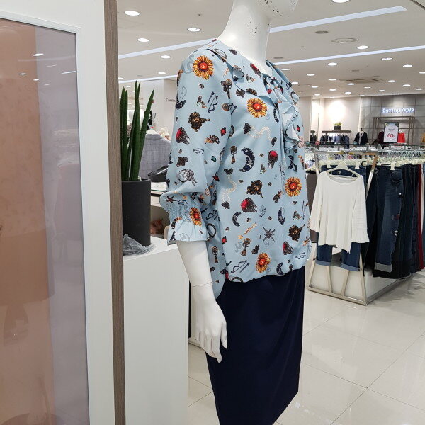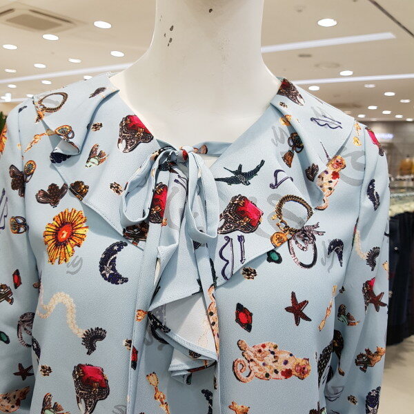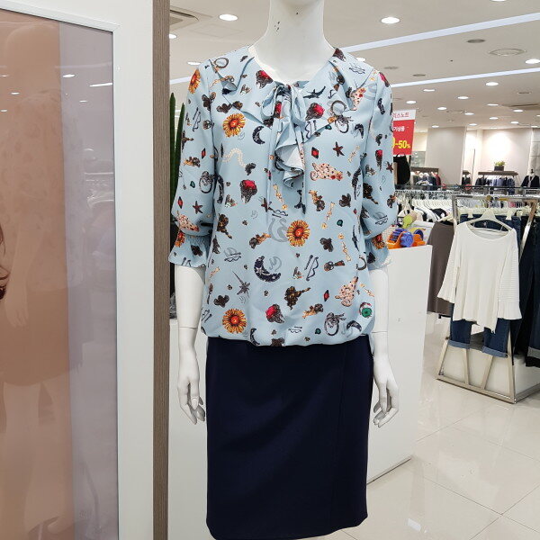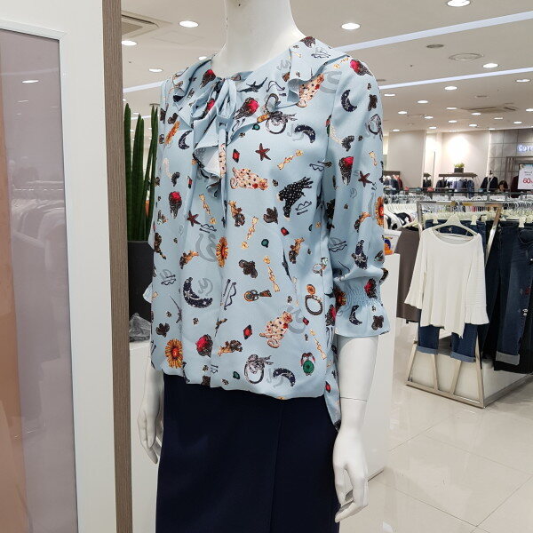 리본 프릴 블라우스♤브이넥 라인에 프릴과 리본을 달아 귀여움을 같이 달아놓은듯♤ 패턴으로 세련됨을♤앞밑단을 짧게 만들어 치마나 바지속에 넣을 필요없이 나온 배를 커버해줌