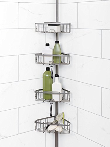 Zenna Home 2131NN, Tension Corner Pole Caddy, Satin Nickel