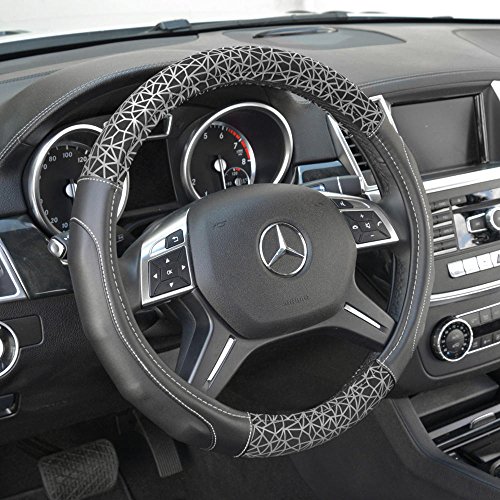 Gripdrive Pro by Motor Trend: Synth leather steering wheel cover is the perfect addition to any vehicle. It's soft leather and comfort grip sides make for a clean, sleek look. Featuring sporty accent stitching. Installation: 1) begin by measuring your steering wheel to ensure a correct fit. 2) take the steering wheel cover and hold it up to your steering wheel, noticing where the top, bottom, and sides of the cover are located. With some steering wheel covers, there will be stitching located at the bottom. 3) align the bottom of the cover with the bottom of your steering wheel and press it over, wrapping it around the bottom portion of the wheel. 4) moving up, around the steering wheel, continue pulling the cover over the wheel. 5) once the cover is on, adjust for proper alignment. 6) enjoy your new steering wheel cover note: you can use a blow dryer on high heat to soften the leather. This will make it easier to stretch it around your steering wheel.Feature