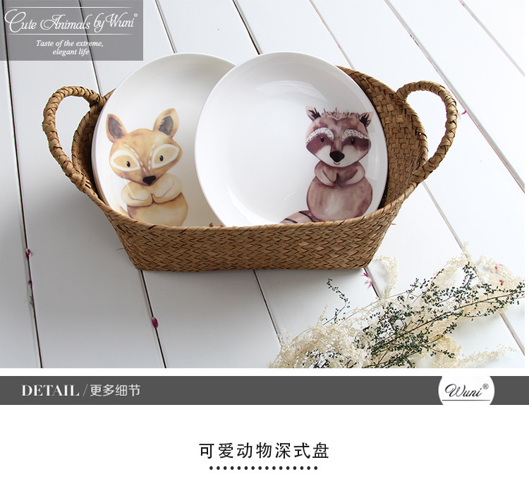 可爱动物家用7寸饭盘餐具深式意面盘陶瓷菜盘水果盘骨瓷西餐盘子