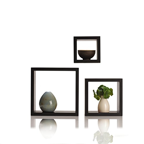Made from lightweight MDF wood, large measures 9x9-inches, medium measures 7x7-inches and the small measures 5x5-inches; each shelf is about 3.5-inch deep