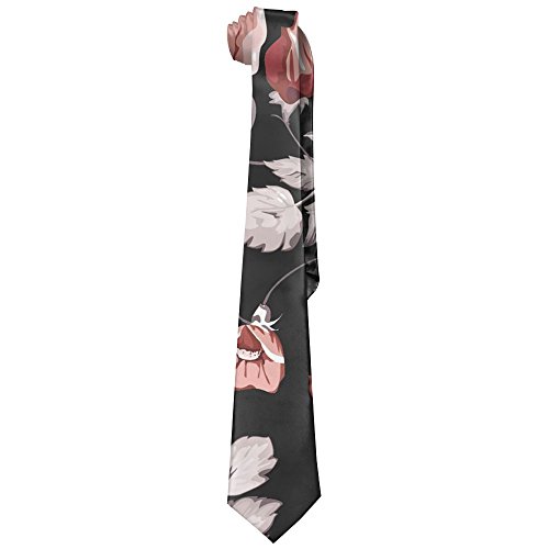ZHONGJIAN Black Red Rose Tie Men's Cotton Printed Neck Tie Skinny Neckties Length 143-145cm