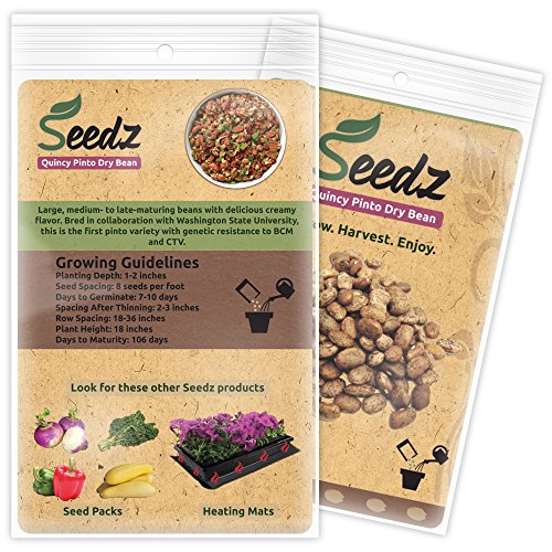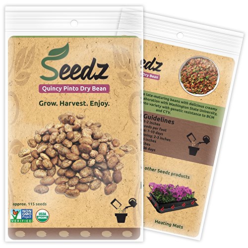 CERTIFIED ORGANIC SEEDS (Appr. 115) - Quincy Pinto Dry Bean Seeds - Heirloom Seeds Beans Collection - Non GMO, Non Hybrid Vegetable Seeds, USA