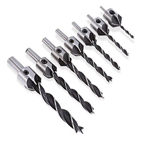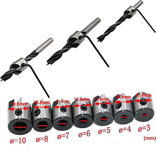 - The set includes 7 pieces of woodworking countersink drill bits: 3mm, 4mm, 5mm, 6mm,7mm,8mm,10mm, with numbers on the drill bits for easy recognition. Specially designed for sleeve countersinks or bores pilot holes.