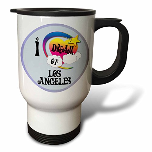 3dRose Cute Girly Heart Star Clouds I Dream of Los Angeles Travel Mug, 14-Ounce
