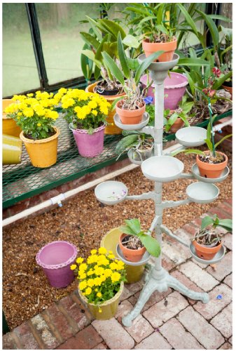 Abigails 14.5"x14.5"x41.75" Iron Six Plant Stand Holder. New to our garden accessory line up is this great multi level, iron plant stand with movable arms, in a neutral green wash finish.