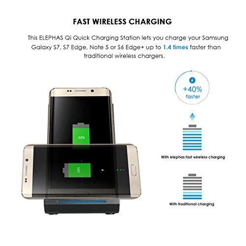 ELEPHAS Fast Wireless Charger Qi Mobile Wireless Charging Stand for Samsung Galaxy S8 Plus S7 Edge S6 Edge Plus Note 5 Nexus Nokia Lumia LG HTC (No AC Adapter)