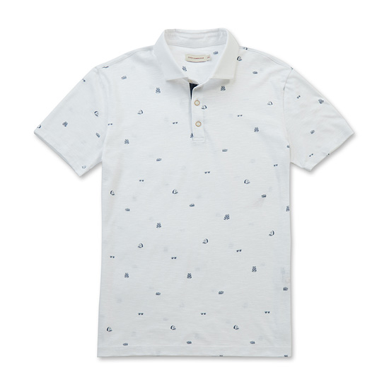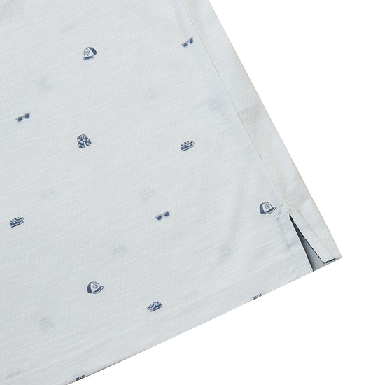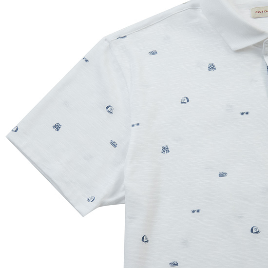 - 유니크한 패션소품 프린트가 돋보이는 반팔 카라 티셔츠.