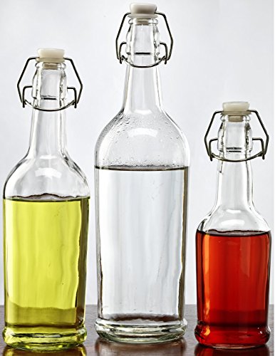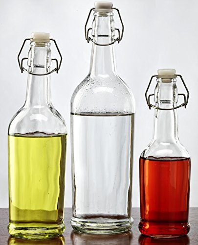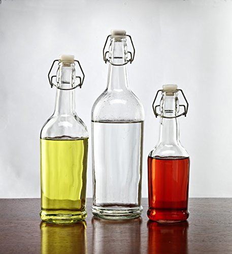 Circleware Olive Oil and Vinegar Glass Beverage Dispenser Bottles with Hermetic Lid, Set of 3, 33/17/8.5 oz., Clear