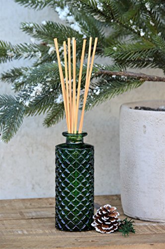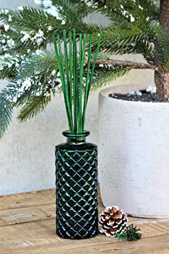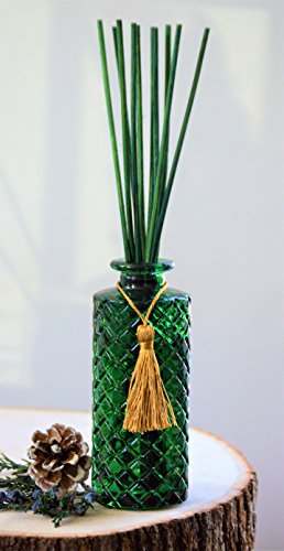 Holiday SALE! Manu Home Holiday Forest Pine Reed Diffuser Set- Includes Beautiful Green Glass and two sets of sticks. Green and Natural~ 5.5 oz ~ Made in the USA!