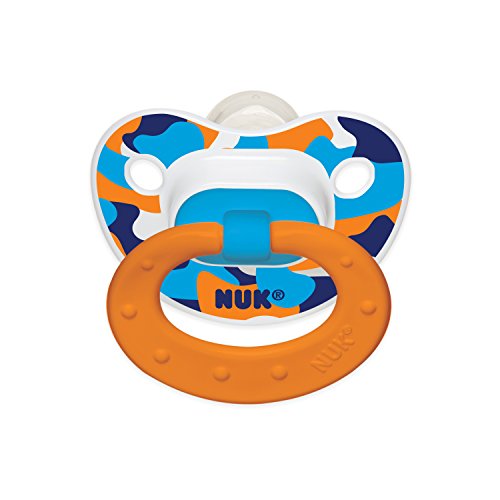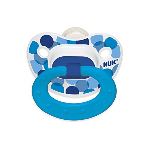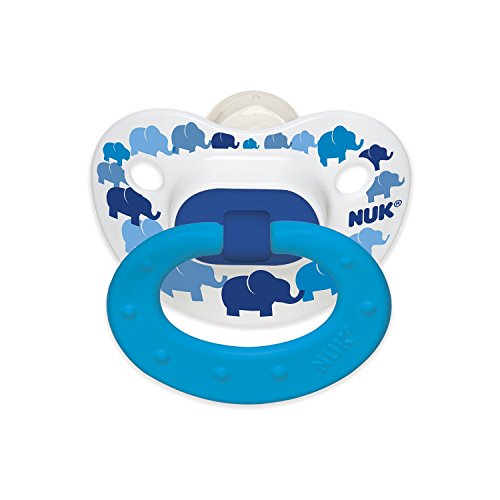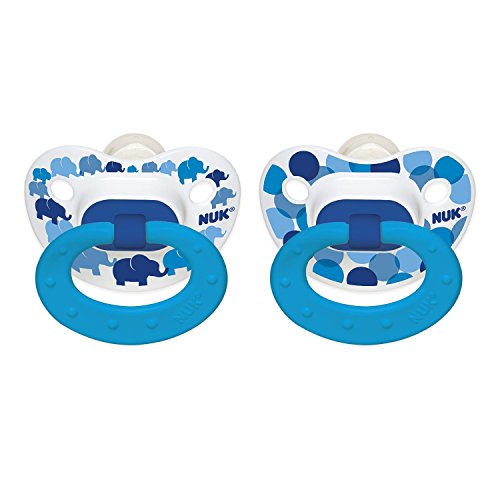 -. Binding : Baby Product -. Brand : NUK -. Feature : Elephants & Butterflies pacifiers feature colorful dots, butterflies or elephant designs / Features our improved nipple that soothes and calms baby better than our original nipple and an asymmetrical shape that helps promote healthy oral development by naturally fitting into your baby's palate / Scoop nipple cavity allows maximum tongue movement, which gently exercises your baby's tongue, palate and jaw and promotes proper teeth alignment by helping your baby avoid thumb-sucking / Heart shaped shield fits perfectly under baby's nose for easy breathing and less irritation / BPA free with silicone orthodontic nipple and made in the USA -. Label : NUK -. Manufacturer : NUK -. ProductGroup : Baby Product -. ProductTypeName : BABY_PRODUCT -. Publisher : NUK -. Studio : NUK -. Title : NUK 2 Count TrendLine Orthodontic Pacifier