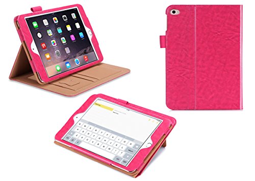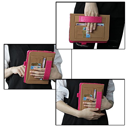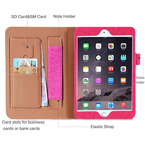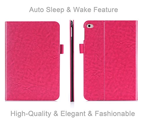 [Description] Specifically DESIGNED for iPad mini 4 (2015 Release). AUTO WAKE / SLEEP & HANDS-FREE STAND design: magnetic strip built inside for automatically wakes or sleep when the lid is opened and closed; High stand stability_ adjust different angles as you like_ perfect for video-chatting and movie-watching. ANTI SCRATCH: Durable PU leather exterior will not leave lose threads around edges even after long periods of use. Soft scratch-free microfiber lining adds comfort and an additional layer of protection from dust and scratches. ELASTIC STRAP & CARD SLOTS & STYLUS HOLDER & NOTE HOLDER: convenient for one-hand holding; Special designed for you to put your business cards/ bank cards/ credit cards and so on. COMPLETE ACCESS: with precise cut-outs and openings for to all tablet features; Easy to install and remove.
