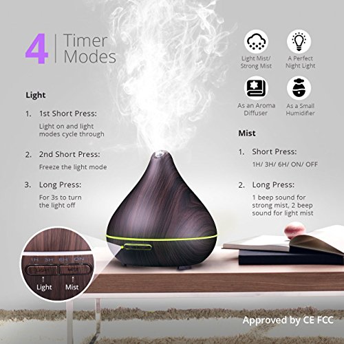 Lovely Wood Grain Featuring stylish wood grain finish, this essential oil diffuser matches any décor at your home and office perfectly. A lovely unit with fragrance (if you add several drops of essential oils into it), making your life beautiful and healthy.