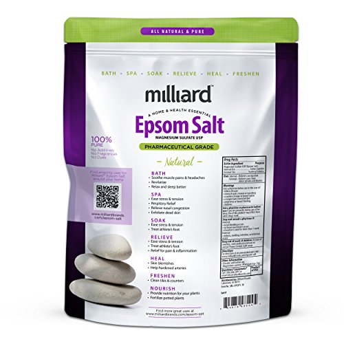 - Two cups of Epsom salt in a bath can help ease stress, muscle pain, headaches, hardened arteries, athlete’s foot, nasal congestion, skin blemishes, and a number of other ailments.